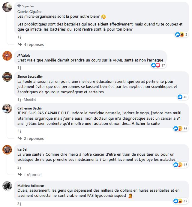 C'est incroyable de lire les commentaires idiots sur le page de Xavier Camus, notre bienfaiteur professeur enseigne la philo à nos jeunes dans un Cegp de Montréal, il n'y à rien là, tout est normal. Xavier Camus à décidé de s'en prendre à Amélie Paul, qui explique simplement que les micro-organismes sont là aussi pour notre santé.