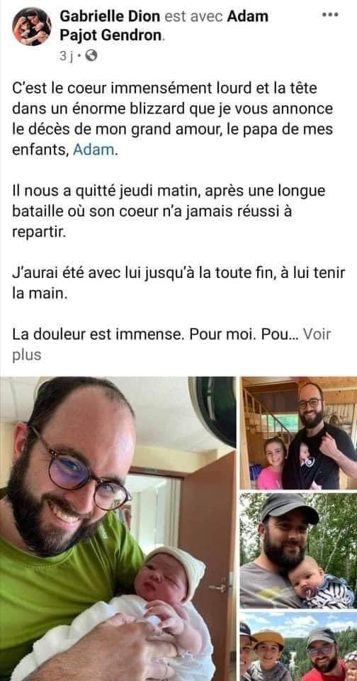 Adam qui habitait Rimouski est décédé, son coeur a lâché...RIP